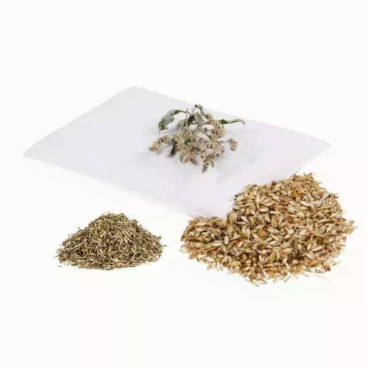 Dieses Kissen enthält Betonikakraut, das mit un-gekreuzten Bio-Urdinkelspelzen vermengt wird – dem Urgetreide, das bereits in der Lehre Hildegards von Bingen eine besondere Bedeutung hatte. Die feine Struktur der Dinkelspelzen sorgt für eine besondere Haptik, während ihre Stabilität eine angenehme Unterstützung bietet.