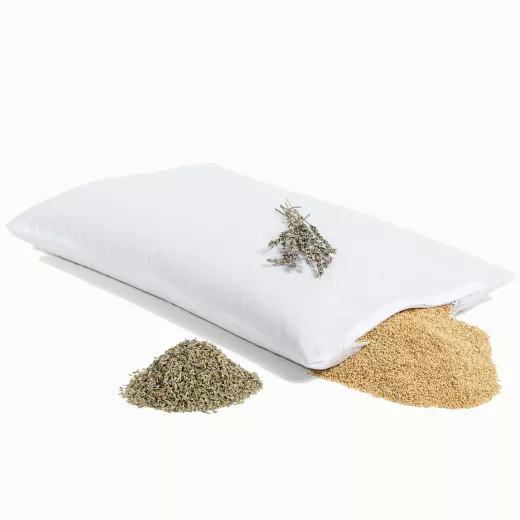 Die feinen Lavendelblüten in der Füllung verleihen dem Kissen eine besondere Note und erinnern an die weiten Lavendelfelder der Provence. Vermengt mit hochwertigen Bio-Hirseschalen sorgt die Füllung für eine angenehme Luftzirkulation und eine komfortable Liegeposition. Die Hirseschalen stammen aus kontrollierten österreichischen Mühlen mit Bio-Zertifikat und zeichnen sich durch ihre feinkörnige, anpassungsfähige Struktur aus.