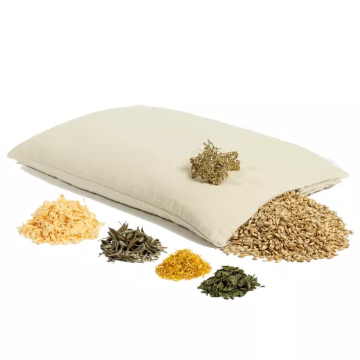 Sorgfältig von Hand vermengt mit ungekreuztem, artenreinem Dinkelspelz. Die Füllung bietet eine kompakte Stütze für die Wirbelsäule, ist angenehm fest und dennoch nachgiebig – für eine ideale, ergonomische Liegeposition.