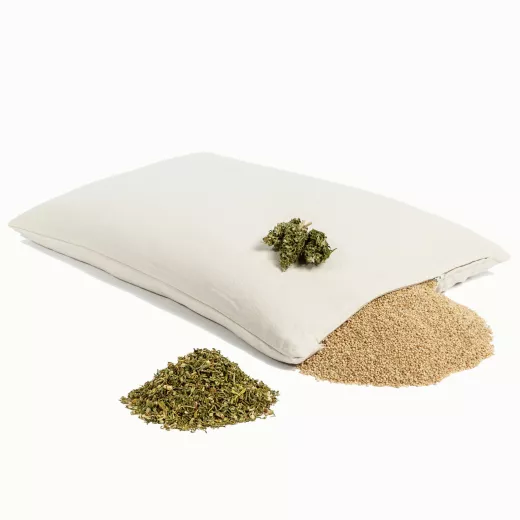 Unsere bewährten Himmelgrün Bio-Hirsekuschelkissen sind nun auch mit Hanfblütendolden und Hanfblütenmehl angereichert. Diese handgepflückten und schonend weiterverarbeiteten Hanfblüten bieten Duftkissenqualität mit einem THC-Gehalt unter 0,2 % und sind reich an CBD. Hanf ist bekannt für seine vielfältigen Einsatzmöglichkeiten und hat eine lange Tradition als Nutzpflanze für Fasern, Medizin und mehr. Die Zugabe von Hanfblättern in dieses Kissen kann zur Beruhigung beitragen und Ihnen helfen, Stress abzubauen und entspannter zu schlafen.