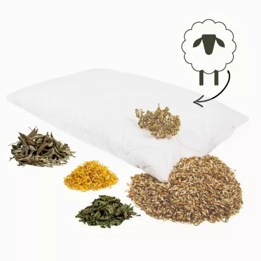 Bergkräuter Kraftkissen mit Bio Merino Schafwollkammern