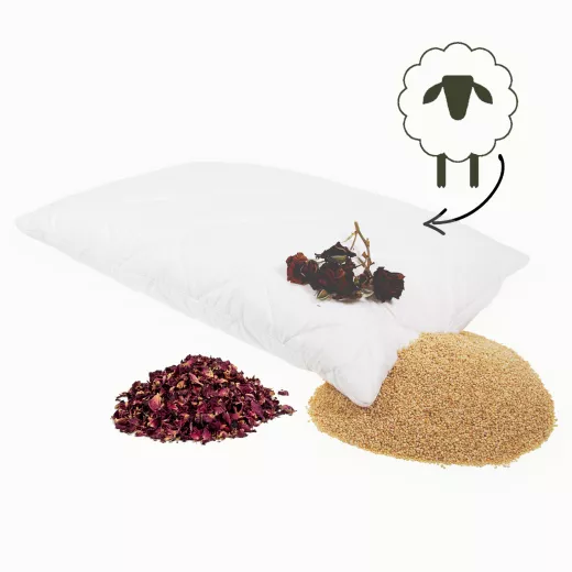 Rosenblüten Kissen mit Bio Merino Schafwollkammern