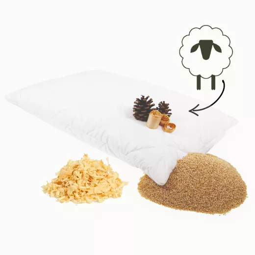 Zirbe Hirse Kissen mit Bio Merino Schafwollkammern