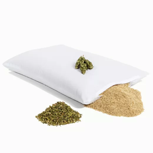Unsere bewährten Himmelgrün Bio Hirsekuschelkissen sind nun auch mit 20g reinen Hanfblütendolden und 50g Hanfblütenmehl angereichert. Die handgepflückten und schonend weiterverarbeiteten Hanfblüten bieten Duftkissenqualität, wobei der THC-Gehalt unter 0,2% liegt und sie reich an CBD sind. Hanf zählt zu den ältesten und bekanntesten Nutzpflanzen unseres Planeten und wird von der Menschheit seit tausenden von Jahren genutzt. Dieses Kissen vereint Tradition und moderne Bedürfnisse für einzigartigen Schlafkomfort.