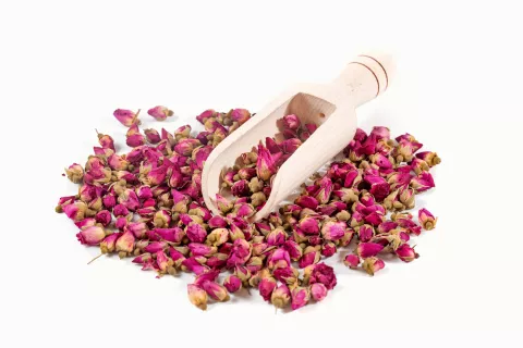 Wir verwenden ausschließlich reine getrocknete Rosenblüten in hochwertigster Qualität. Sie enthalten ätherische Öle mit über 400 verschiedenen Bestandteilen. Rosenblüten können die Wundheilung fördern und mit ihren ätherischen Ölen "öffnen sie das Herz“.