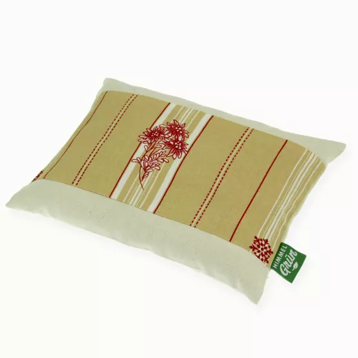 in der unberührten Natur der Berge und auf unseren Kissen. Geschützt, verborgen und wunderschön - das Edelweiß für Sie! Nicht am Hut, sonder zu Hause auf der Couch. Kirschkerne sorgen im großzügigen Wärmekissen für wohlige Naturwärme während der kalten Jahreszeit.