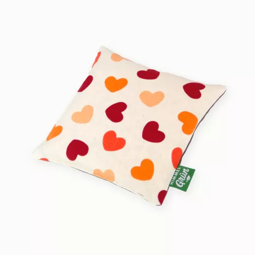Dieses Kissen aus unserem Lieblingsherz-Stoff besticht durch sein zeitloses Herzmuster und den modernen Touch des reinen Baumwollstoffs. Da es mit Naturmaterialien gefüllt ist, empfehlen wir, es trocken zu lagern und nicht zu waschen.