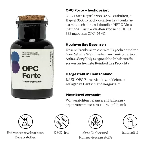 Mit einem OPC-Gehalt von 95%, bestimmt nach der Bate Smith Analysenmethode, und einem HPLC-Wert von etwa 50%, bietet unser Produkt die optimale Dosis an kraftvollen Antioxidantien. Erfahren Sie Vitalität und Stabilität für Körper und Psyche mit unserem OPC-Nahrungsergänzungsmittel. Bestellen Sie jetzt und geben Sie Ihrem Körper die Unterstützung, die er braucht!