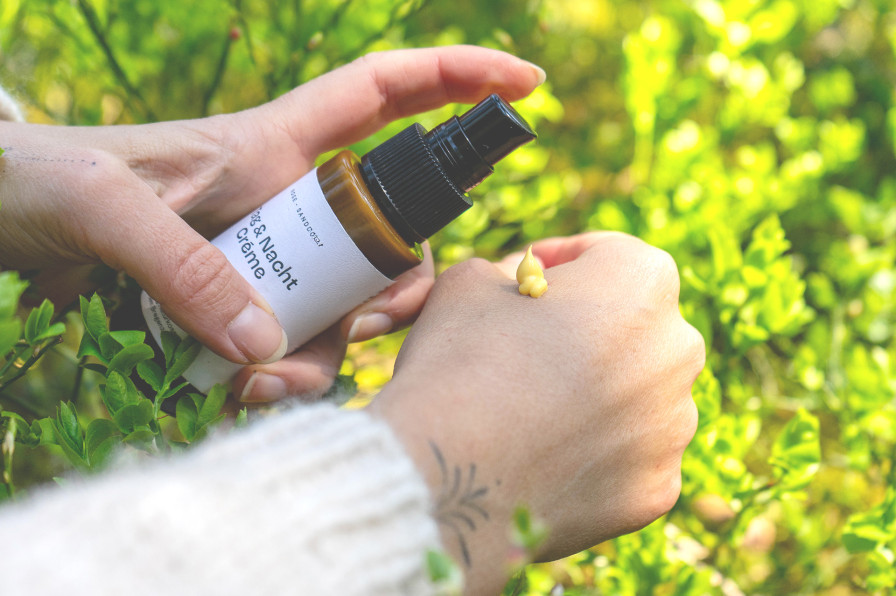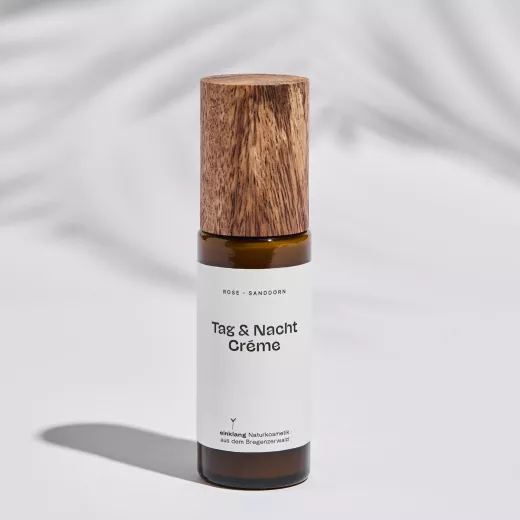 Unsere naturbelassene und reichhaltige Tag- und Nachtcreme vereint die regenerierenden Kräfte von Rosenöl und Sanddornfruchtfleisch. Vitamin E schützt vor freien Radikalen und wirkt antioxidativ, während wertvolle Pflanzenöle deine Haut intensiv mit Feuchtigkeit versorgen. Diese Kombination sorgt für ein geschmeidiges Hautgefühl und ein gepflegtes, frisches Aussehen – rund um die Uhr.