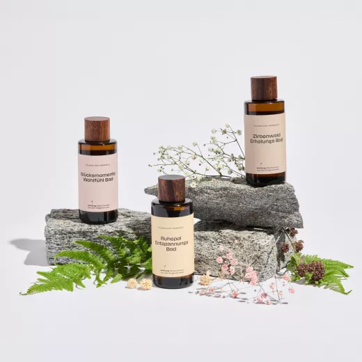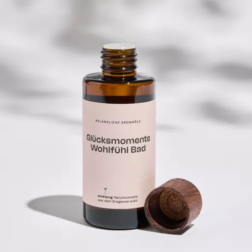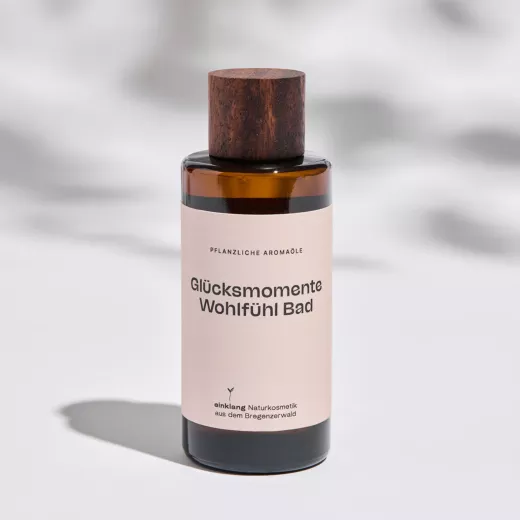 Unser Glücksmomente Wohlfühlbad wird in recycelten Glasflaschen abgefüllt – eine umweltbewusste Verpackung, die nicht nur edel aussieht, sondern auch ressourcenschonend ist. Damit verbindest du nachhaltige Pflege mit purem Wohlbefinden – für dich und die Umwelt.