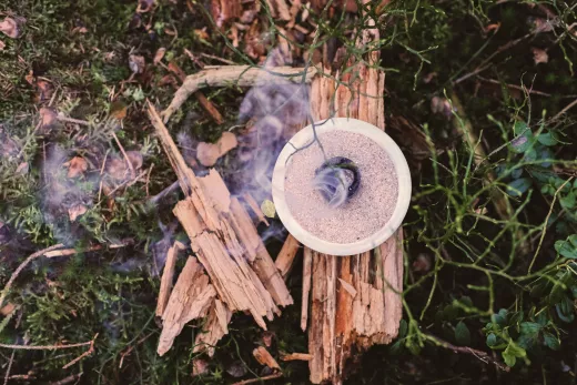 Räucherkohle ist ein bewährter Begleiter für Räucherrituale. Die golden Temple Kohlen entzünden sich sehr leicht und mühelos. Halten Sie diese über eine Kerzenflamme oder Streichholz. Sie beginnt rasch zu knistern. Danach legen sie die knisternde Kohle auf Räuchersand oder eine Keramikschale, Metallsieb oder Teller auf Ihr Räuchergefäß.