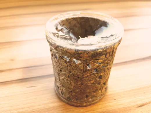 Die Glasschale besteht aus hitzebeständigem, robustem Glas, das den Anforderungen des täglichen Gebrauchs standhält. Sie eignet sich hervorragend zum Verdampfen von ätherischen Ölen, Wasser oder zum sanften Schmelzen von Räucherharzen. Das schlichte und klare Design fügt sich nahtlos in die Ästhetik Ihres Räucherstövchens ein und unterstreicht dessen natürliche Eleganz.